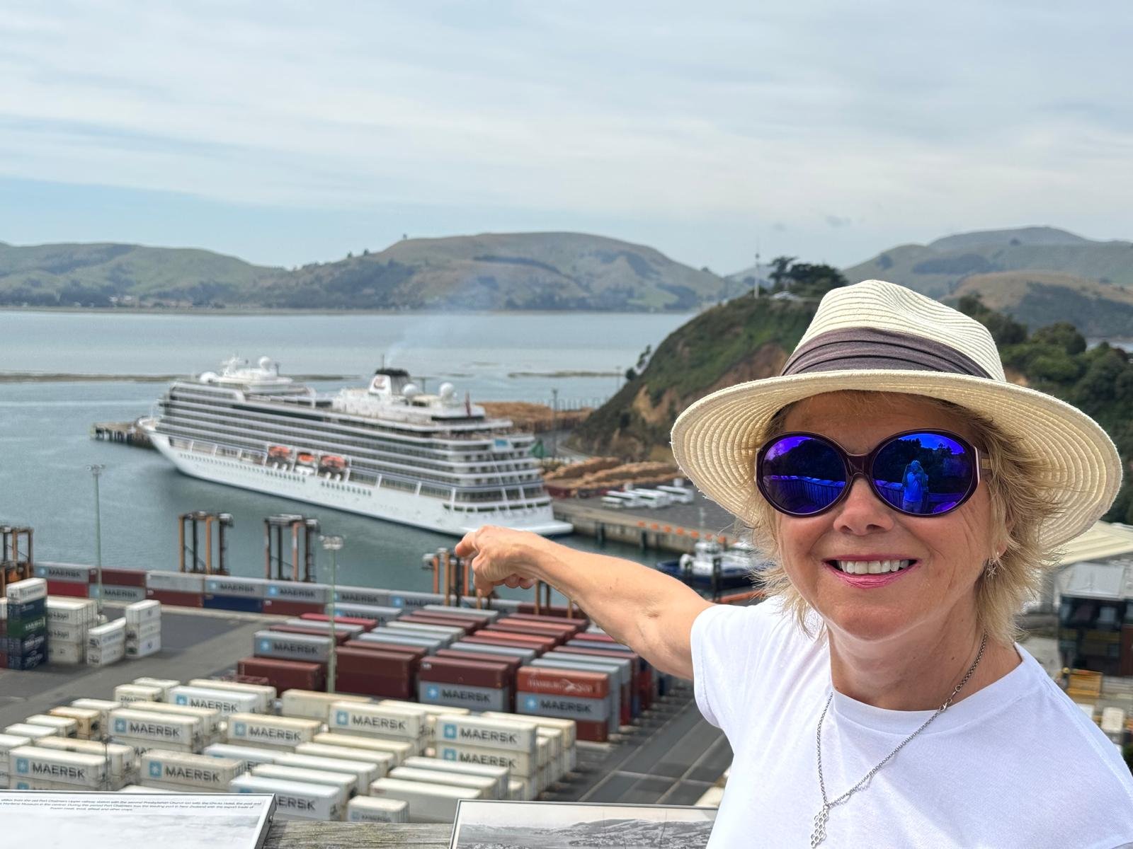 Stunning! Up the hill and around the beautiful Victorian gothic Iona Church on its bush clad hillside site, and then onto Lady Thorn (a former Mayoress) Rhododendron Dell, and lookout – sadly we had missed the best of the blooms, but it was a lovely walk with pretty views and guess who we saw anchored and looking delightful in the Port…..Viking Orion! The very cruise ship we boarded in Mumbai in May 2023 for our cruise through the Middle East and onto Athens, we could even see the cabin we had on the stern! Last stop, the Scott Memorial, named after Captain Robert Scott. A tall and gently tapering column of Port Chalmers stone, surmounted by an anchor with a marble tablet inscribed with the names of those who perished on his ill-fated expedition which left Port Chalmers for Antarctica on 19 November 1910. On the grassy site opposite, with the beautiful peninsula views, is this huge anchor, known as the “Nineteen Fathom Foul”. Its origin is mysterious and how it ended up in the harbour is undocumented. However, it was a shipping hazard so in 1978 it was raised from the harbour depths and is now a wonderful monument.