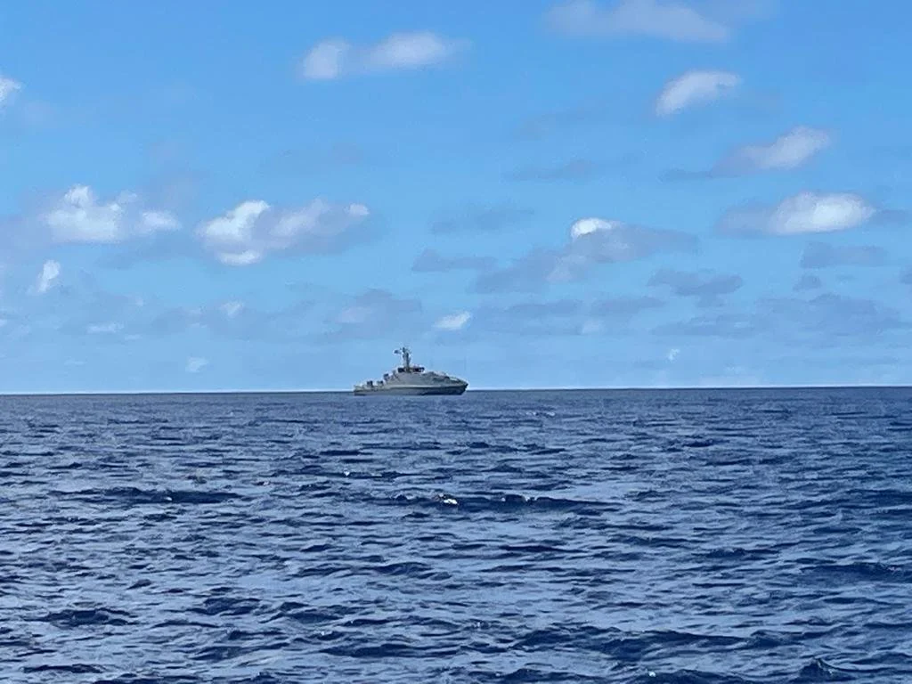 Tuesday 30 August – well, we’ve had a bit of excitement this afternoon 200 miles WNW of Aitutaki lies Palmerston Atoll which has about 6 motus. We’d seen it on our charts and wondered which country it belonged to, turns out it’s part of the Cook Islands. As it was on our route, we thought we would sail closer to it and have a look, it’s surrounded by reefs so we had no intention of stopping. As we got nearer to it, there was a Rarotongan Naval ship on exercises close by which made contact with us to ask our intentions, we told them that we were just sailing by and asked about the inhabitants, we were informed that they had still not been fully vaccinated against Covid so we could definitely not stop.
